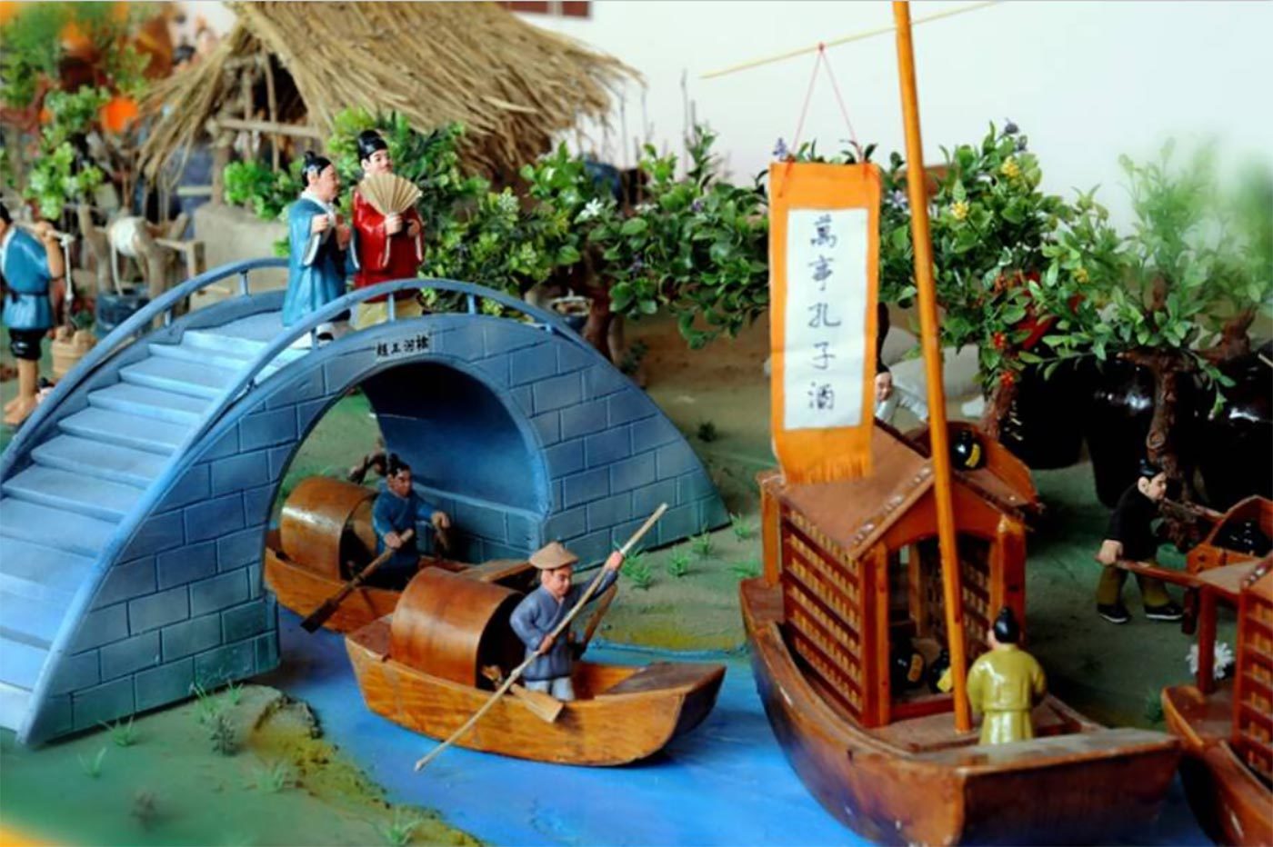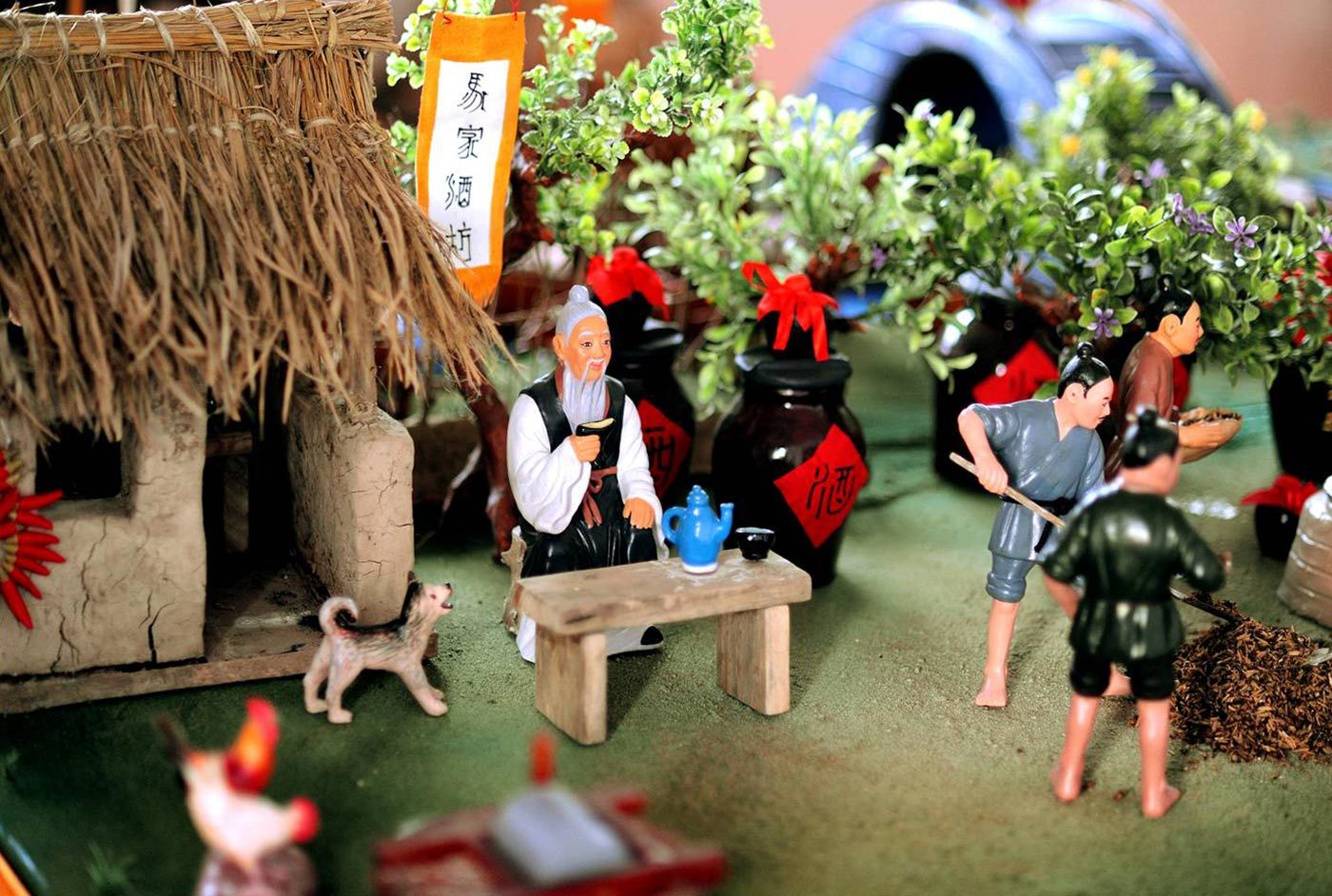 这是四个泥塑的历史场景,再现的是孔子酒2500多年的历史沿袭和发展历程。